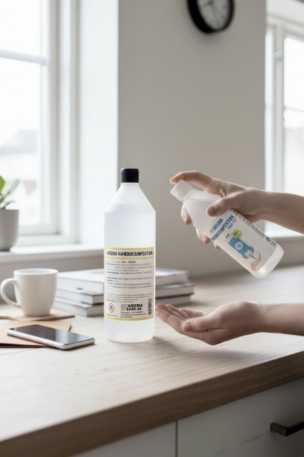 Bruksanvisning: Arena hånddesinfeksjon 85% GEL doseres 1-2 ml i hånden. Skal brukes konsentrert og ikke vannes ut.